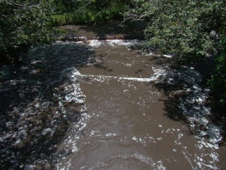 Também nos foi informado e constatado, que a Cia. está construindo uma tubulação em PVC para drenar os efluentes diretamente para o Rio Pomba, "mitigando parte do passivo ambiental". Qualquer leigo pode constatar que tal tubulação só vai acarretar mais problemas, contaminando o solo através de vazamentos e... de novo o pobre Ribeirão do Cágado e o Pomba e... o Paraíba do Sul.